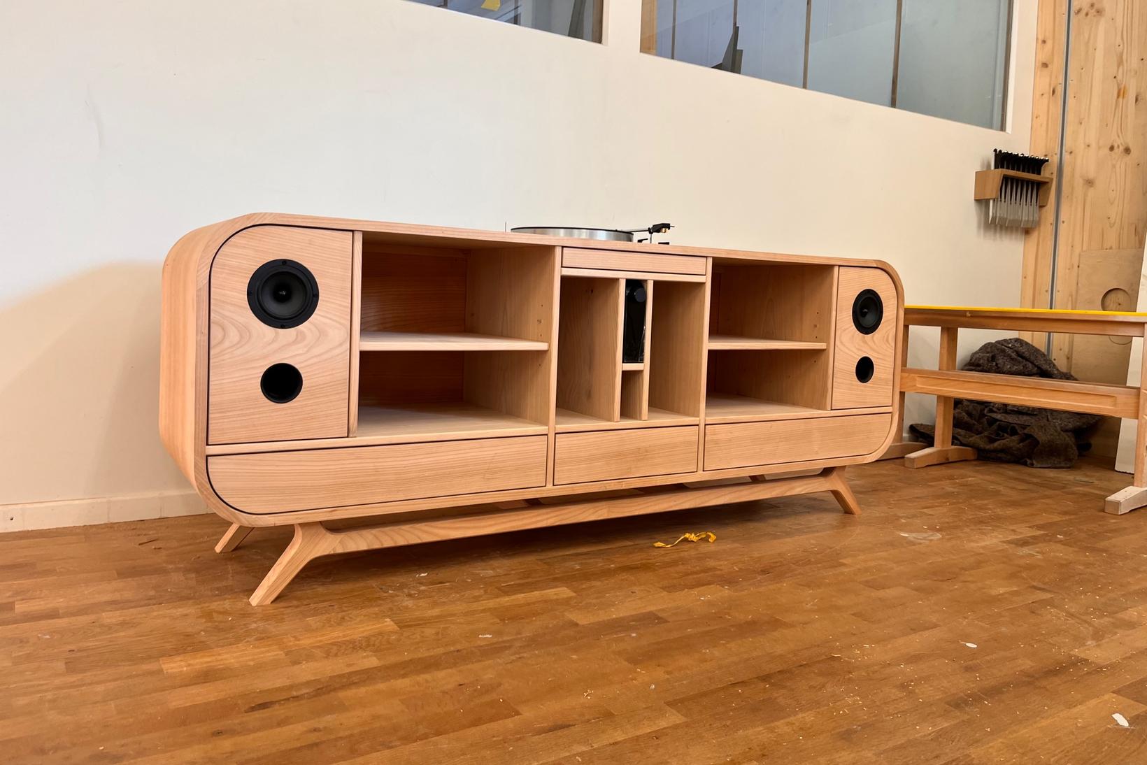Was aus einer Serie von Midcentury-Kultobjekten stammen könnte, ist die Abschlussarbeit von Evelin Swoboda. Eine gelungene Kombination aus Sideboard und Soundanlage, von der wir bestimmt noch hören werden.