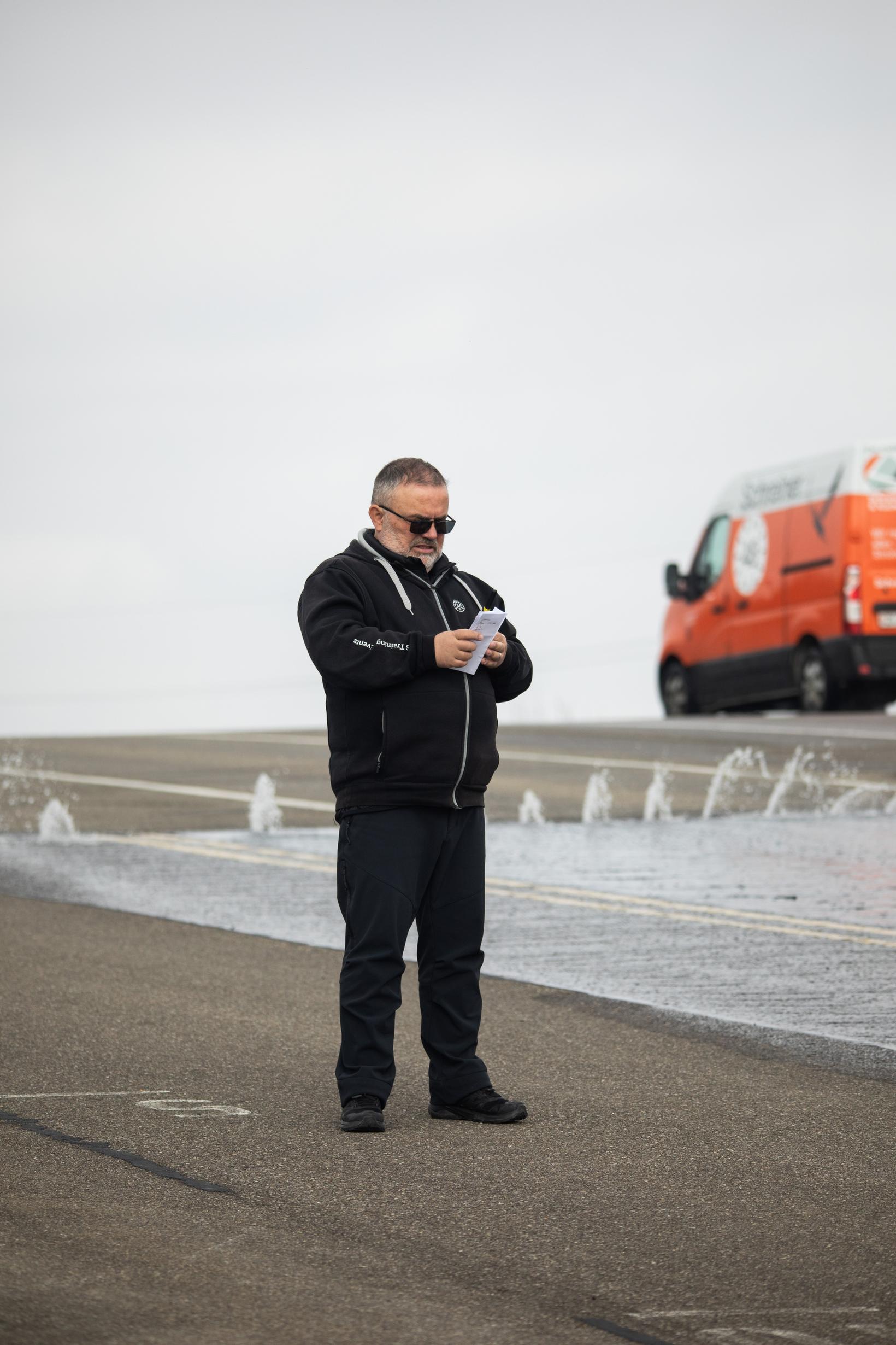 Der praktische Teil bestand aus einem Fahr- und Bremstraining auf einem Parcours mit Kurven, Steigungen und unterschiedlichen Belägen. Über Funk angeleitet von TCS-Instruktor Dani Oess, hatten unsere 48er die Gelegenheit, das Verhalten ihrer Servicebusse zu testen. Computergesteuerte Wasserfontänen stellten die Hindernisse dar, denen die Fahrer:innen ausweichen mussten. Besonders eindrücklich fand Samuel Gonzalez den Einsatz des Elektronischen Stabilitäts-Programms (ESP), das bei den Bussen standardmässig aktiviert ist. «Mir war nicht bewusst, wie gut sich das Auto beim Bremsen auf dem Glatteis nachempfundenen Belag noch lenken lässt», berichtet er begeistert. «Per Funk erhielten wir direkt Tipps, wie wir beispielsweise enge Kurven noch sicherer einleiten können.»